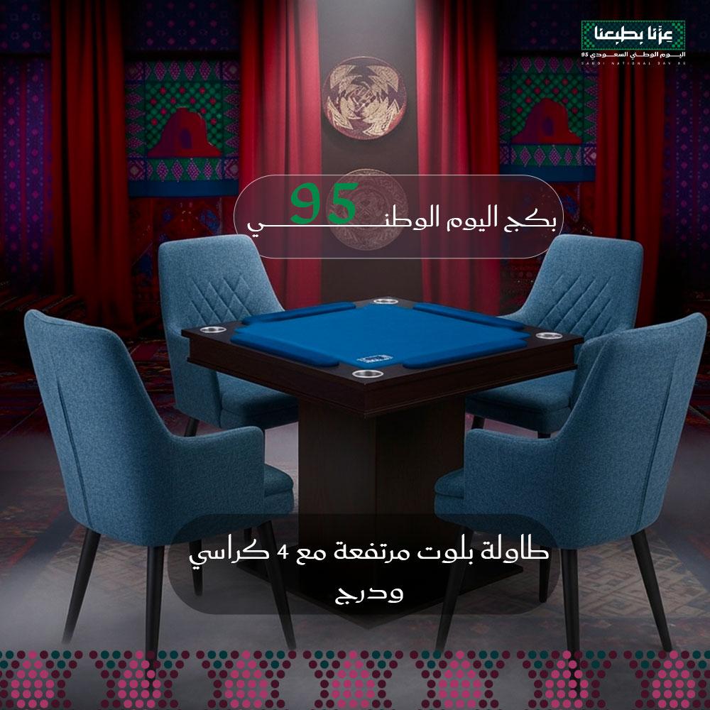 اجعل جلسات البلوت الخاصة بك أكثر فخامة وراحة مع طاولة بلوت مرتفعة مع كراسي.